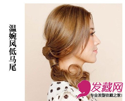 斜刘海搭配侧扎马尾 显温婉贤淑