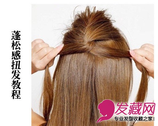step1:先取出头顶的头发分成均等两束扭转成发辫。