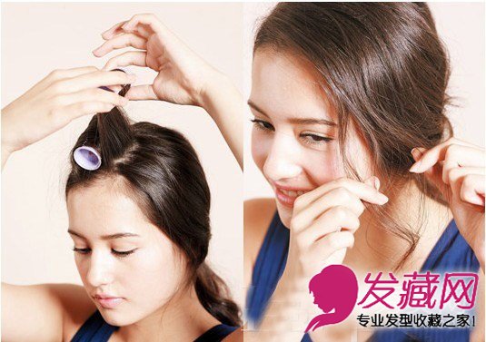 取出刘海部分,用卷发器将刘海打造成微卷的发丝,定型之后轻轻取下用手一一分开刘海发丝,让其自然蓬松充满随性感,最后调整一下位置,这款OL马尾扎发就完成了。