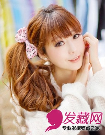 灵动可人的侧扎马尾辫,是萌妹子必备减龄发型,飘飘的卷发用蝴蝶结发饰点缀,白嫩的脸蛋十分清纯可爱。
