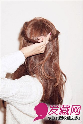 2、大面积随意分开,左右都向后拧起。