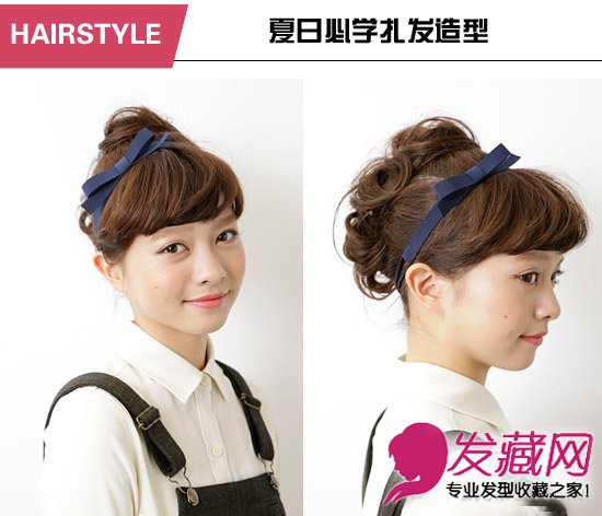 发型点评:饱满立体的波波头盘发搭配一只宝蓝色蝴蝶结发箍,瞬间显得学院风十足。