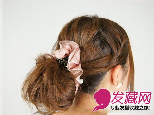 斜刘海烫出柔软线条感 韩式简易马尾扎发图解