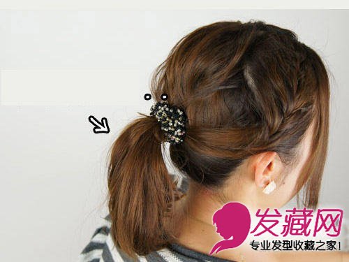 斜刘海烫出柔软线条感 韩式简易马尾扎发图解