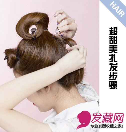 step4:再取出下方的头发在上一个马尾下方帮一个马尾,藏在上部分马尾的下方。