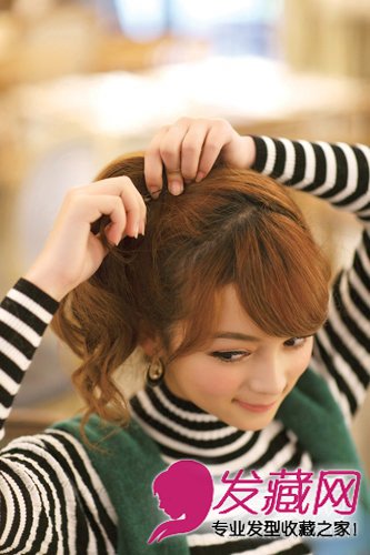 1,将全头头发向斜上侧梳成马尾,注意后脑勺要有弧度才更好看