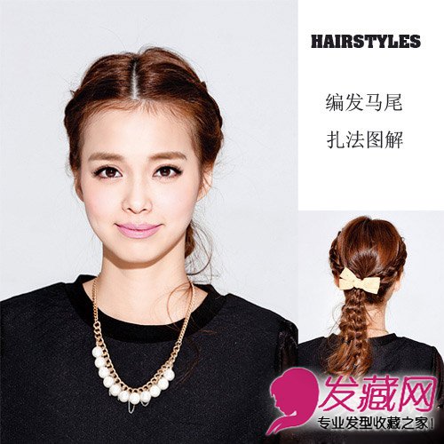 中分的马尾扎发展现出精致脸型 编发马尾辫扎法图解(10)