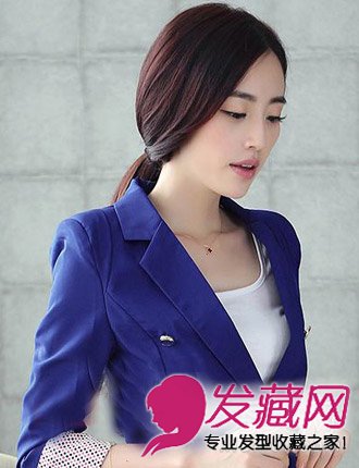 这款酒红色的低马尾发型,特别适合上班族美眉们,简约大气,出门之前不需要花费太多时间打理,可以多睡会,斜分的造型,搭配白里透红的脸蛋,优雅大气,温婉大方。