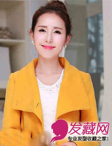 这款高位的丸子头发型,棕色的颜色,时尚却不会招摇过市,清爽利落,刘海全部梳起,露出饱满的额头,简约大气,很有干练通勤风的感觉,超适合OL哦。