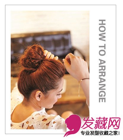step3:将发辫缠绕呈丸子头后用发夹固定。