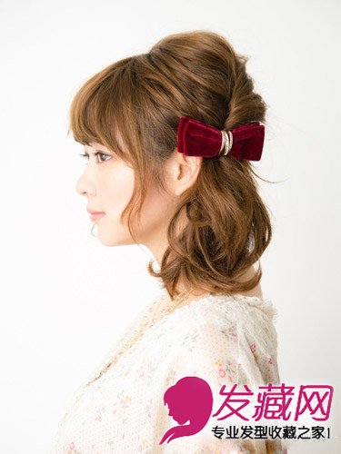 扭转后的发辫让扎发多了几分别致感,发饰的修饰下甜美迷人。