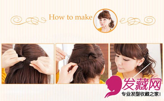 step 2:头发全部向左扭转,用黑色发卡固定。