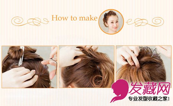 step 3:就还发尾用发卡固定进入马尾中,在搭配上美丽的发圈就完成。
