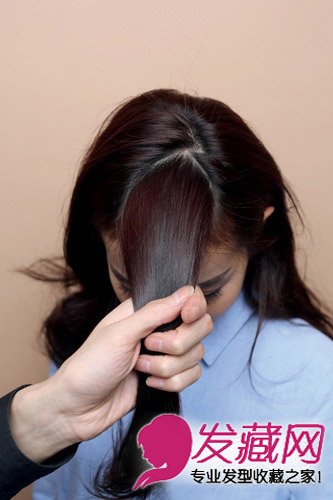 将头发按照图中标示的,将刘海和马尾分成两区。