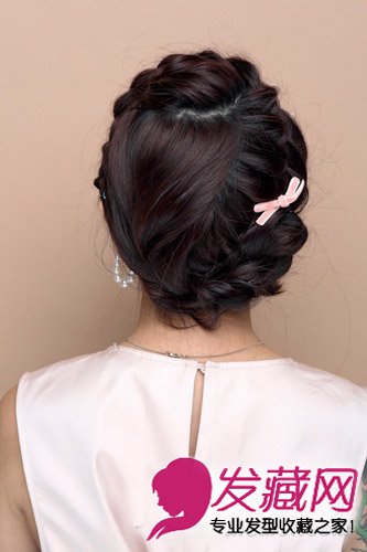 三股辫花环盘发发型 DIY编发盘发+马尾辫(3)
