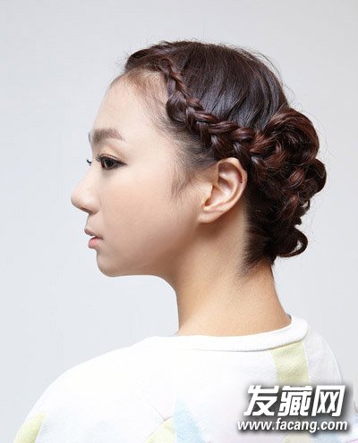 头发沿着头型编成饱满的花环编发,一丝不苟的造型清爽唯美,闪耀吸睛。