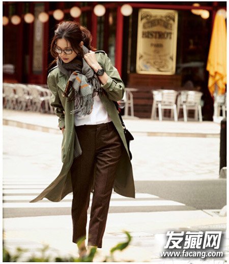 慵懒的马尾扎发散发出优雅清新的气质,中分长刘海随着脸颊内扣,达到修颜效果。