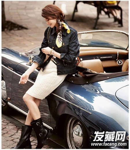 蓬松的扎发慵懒而优雅,头巾点缀其间,时尚摩登气质呼之欲出。