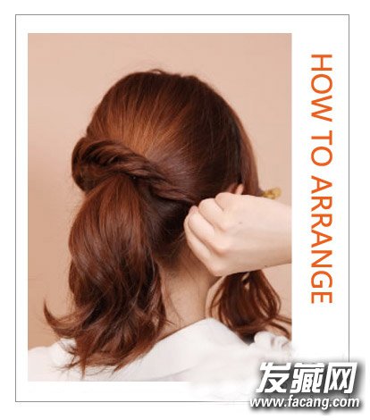 STEP 5:然后将左侧的扭转辫绕向马尾辫。