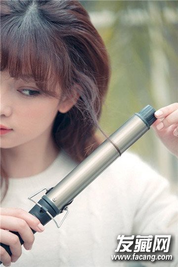 两侧挑出细碎的两缕发丝,用中等直径的卷发棒从下到上卷烫出自然温柔的质感.