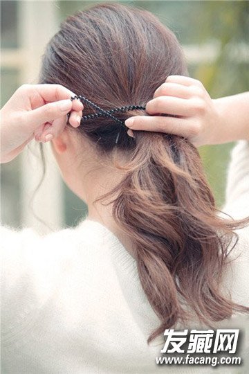 将整头头发向小脑处聚拢,用皮筋固定。切忌用手随意地梳理头发制造蓬松感。