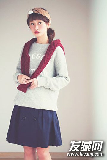 棉衫上肩披针织衫的时候,用一把扎发型来提升平衡。再加上分量感发带打造今年潮流。