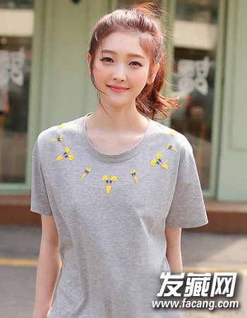 同样是一款简的马尾扎发型,如果妹纸们以自己的脸型有十足的信心的话不防扎上这样一款简单又显清爽范的无刘海式高马尾扎发,而配合温暖的棕橘色当要更显青春活泼感。