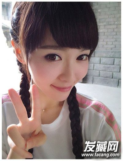 即使是现在生活中偶尔小可爱的自拍造型也很适合呢,刚到眉毛的刘海,随意的扒出一点缺口更显自然,双马尾麻花辫造型粉嫩可人,脸型更加精致了。