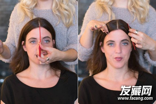 第一步:头发从中间分开,将梳子从中间开始往下梳理。