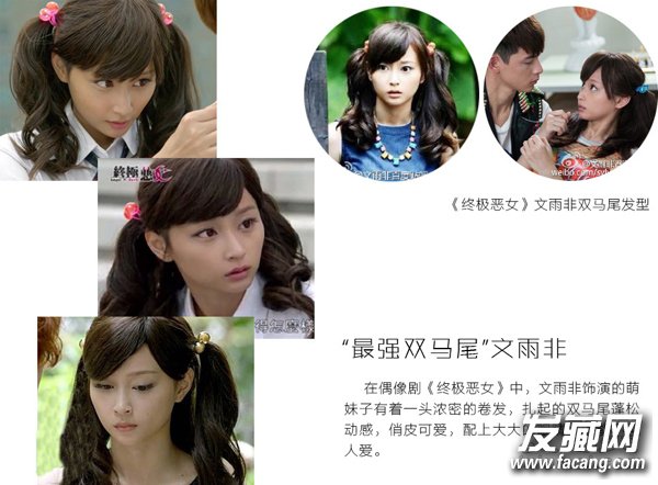 在偶像剧《终极恶女》中,文雨非饰演的萌妹子有着一头浓密的卷发,扎起的双马尾蓬松动感,俏皮可爱,配上大大的眼睛,怎能不惹人爱。