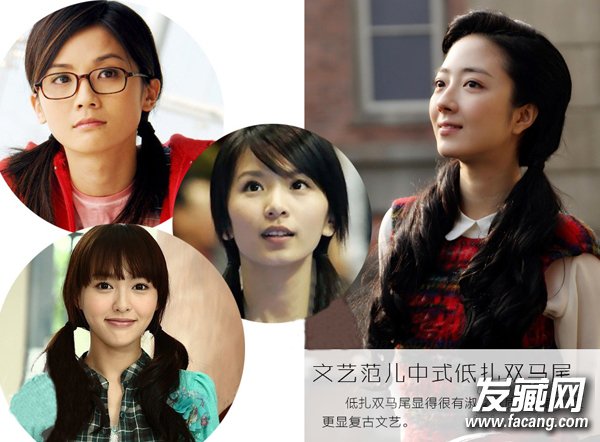 低扎双马尾显得很有淑女气质,露额造型更显复古范儿。