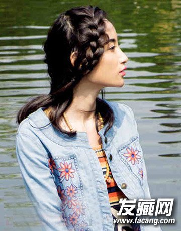 如果不想要太过于平庸的去扎马尾,可以在披肩发的基础上,在刘海部位编个三股辫,清新森女风格及其吸睛。