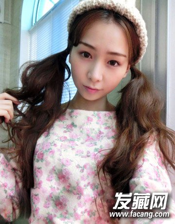 ,卷卷的发丝灵动可人,搭在胸前看起来减龄又显脸小,戴上毛线帽更别致。
