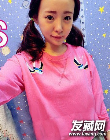 斜分刘海双扎马尾发型 简单时尚