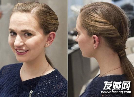 侧面看:两侧的头发往里卷,之后汇合到一起,这款马尾辫的梳法很新颖。