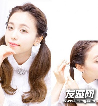 双马尾扎发娇俏可爱发型 韩式减龄双马尾扎法图解(7)
