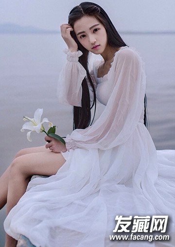 依然是仙气十足的刘海扎发,像这种扎发,刘海一般是中分,然后再将长刘海往斜45度用夹子固定好,展现出整个脸蛋,看起来特别美。
