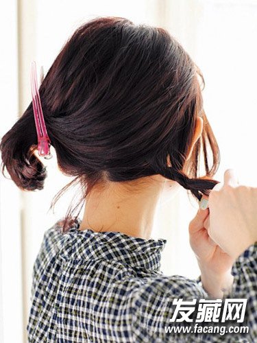 step1:先将左侧的头发用发夹固定,再将右侧的部分头发编成发辫。