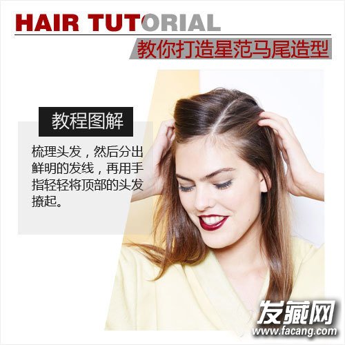 step 1:梳理头发,然后分出鲜明的发线,再用手指轻轻将顶部的头发撩起。