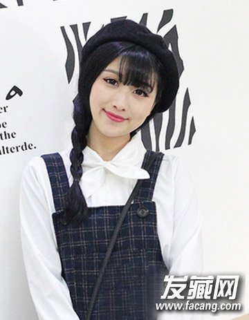 ,利用乌黑亮丽的自然发色再配合长发形式的简单侧边辫子扎发,简单的刘海造型更显女生的清纯甜美风。