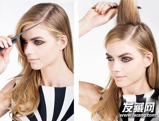 step 2:后面头发分多部分用细齿梳向刮出蓬松感。