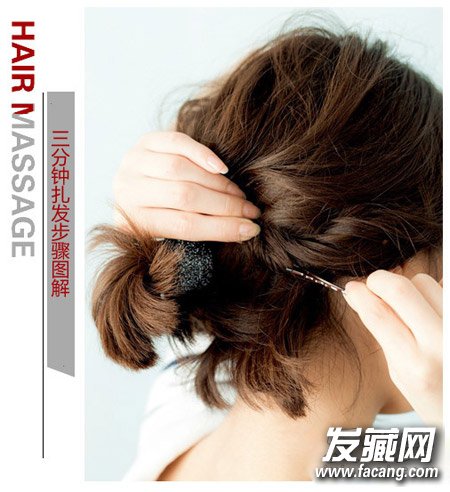 step3:取出右侧的头发扭转成发辫后用发夹固定。