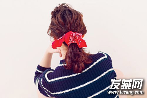 小贴士:为防止丝巾发带散落,可以利用发夹插入固定在发结处。如果绑成蝴蝶结般的形状,相比利落感更能呈现甜美可人气质。