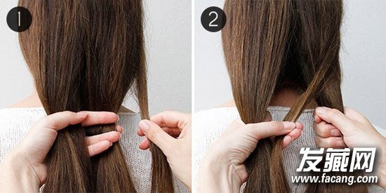 1、将你的头发都梳理到背部,梳理整齐后一分为二,并从最右侧取出一缕较细的头发。