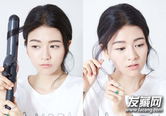 step 3:然后在稍微用卷发棒将两边发丝弄卷曲。