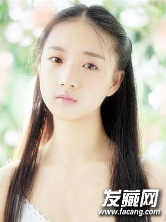 发型,乌黑莹亮的中分直发露出额头清爽大方,简单的公主头扎发造型很有甜美气息。