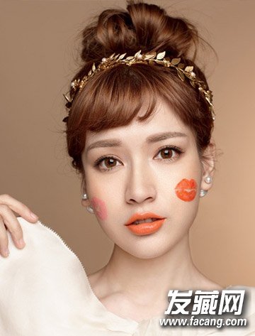 瘦脸活力必备发型,高扎的丸子头能让你显得精神百倍。而华丽的发箍却能带给你优雅名媛的气质。