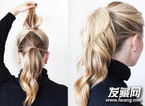 当觉得头顶扁塌绑马尾不太好看的时候,你可以把头发分成两个部分,利用顶部的马尾叠加在底层马尾制造出蓬松的效果,当然直发也没问题只是当收尾的时候记得留一小撮头发来绕住橡皮筋再拿夹子固定,也可以使用发胶让头发比较不会变形。