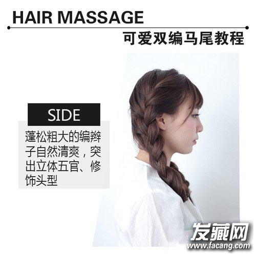 从侧面看是蓬松的编发自然披在肩上,在突出MM的立体五官的同时也修饰MM的头型,让MM后脑更加的圆润饱满。