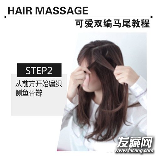 斜分刘海双扎马尾发型 简单时尚